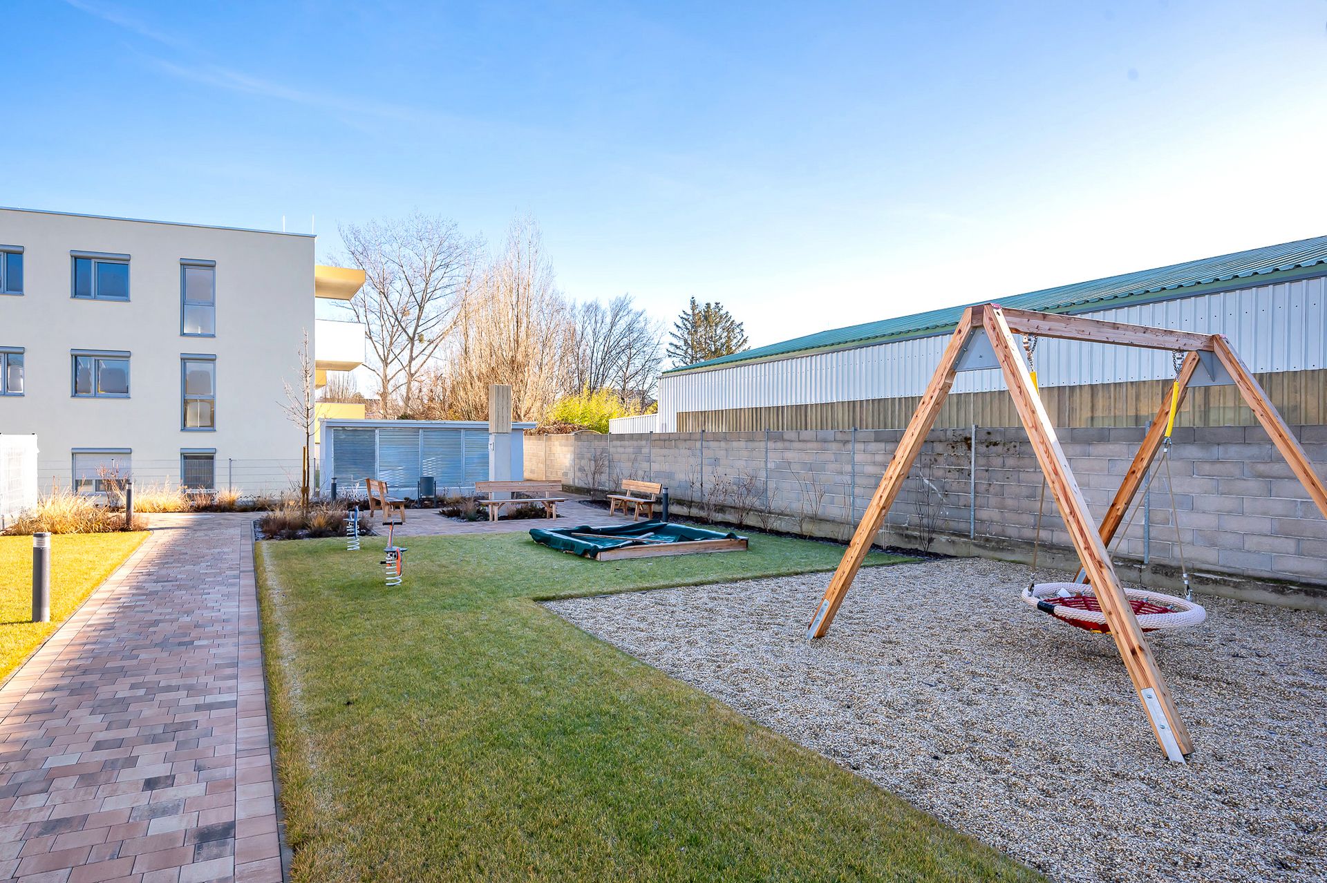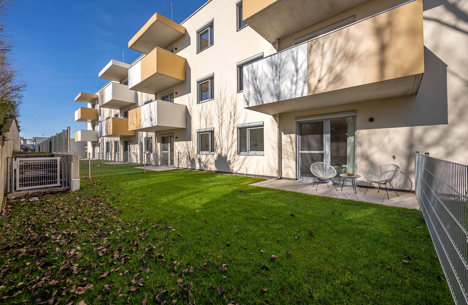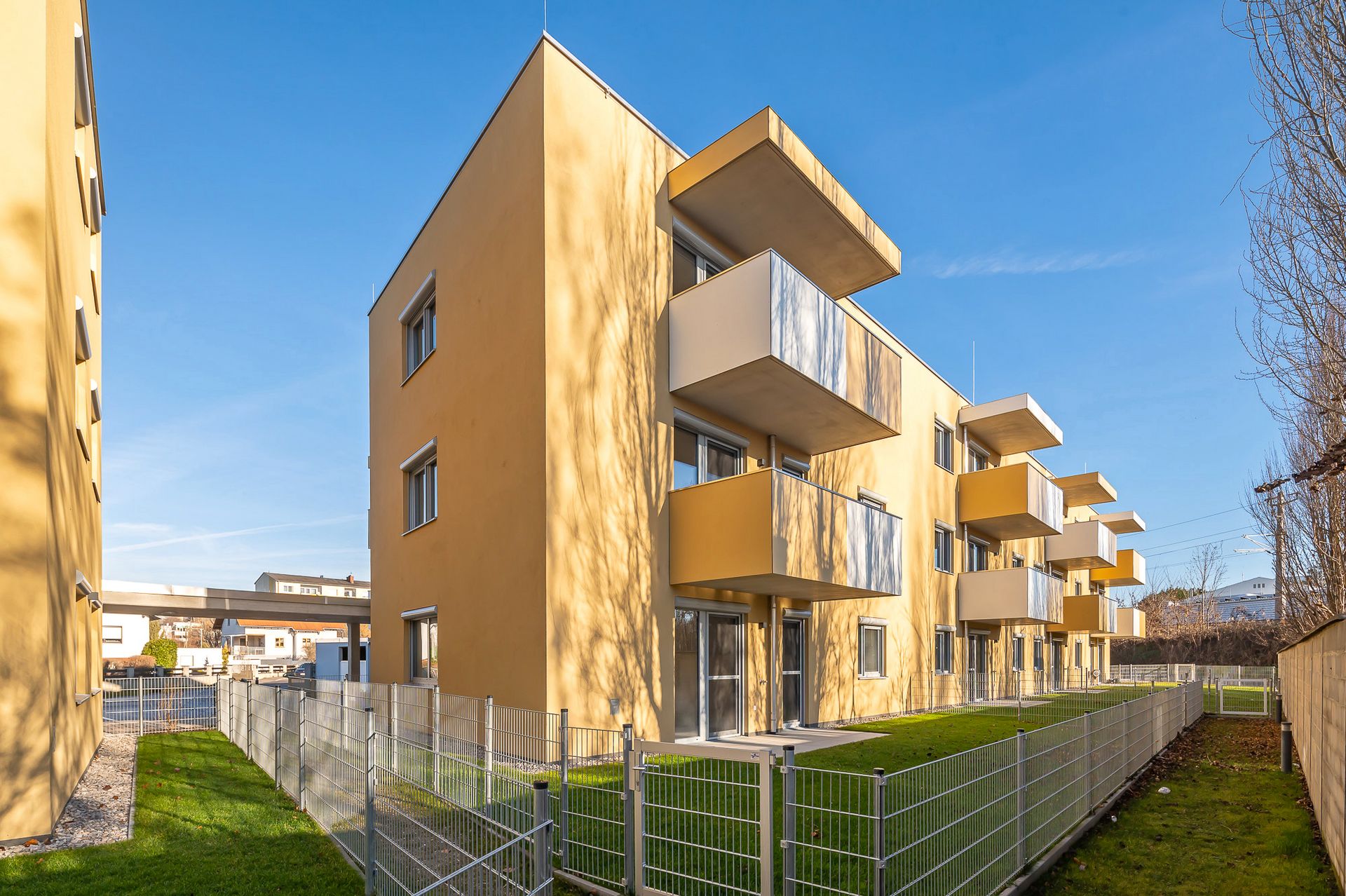 Die Wohnhausanlage GO2EISENSTADT4LIVING -Am Bahndamm 28 + 28a in 7000 Eisenstadt- vereint durchdachte Planung und modernes Design auf harmonische Weise. Der Großteil des Grundstücks wird von einer Tiefgarage und einem großzügigen Kellergeschoss eingenommen. Darüber entstehen 2 zweigeschossige Wohnhäuser (Stiege 1 und 2) mit insgesamt 46 Wohnungen. Die Orientierung der Wohnhäuser ist überwiegend nach Süden ausgerichtet, was lichtdurchflutete Wohnräume garantiert. Komfortabel erschlossen werden alle Wohnebenen durch moderne Aufzüge. Die Wohnungen in den Obergeschossen verfügen über sonnige Balkone, während die Einheiten im Erdgeschoss mit privaten Gärten und Terrassen ausgestattet sind – teilweise auf dem begrünten Dach der Garage. Ein liebevoll gestalteter Spielplatz lädt Familien und Kinder zum Verweilen ein. Der Hausgemeinschaft stehen weiters Fahrrad- und Kinderwagenabstellräume im Eingangsbereich der jeweiligen Stiege zur Verfügung. Die Tiefgarage ist bequem über die Zufahrt „Am Bahndamm“ erreichbar. Zusätzlich stehen weitere oberirdische Stellplätze entlang einer neu angelegten Straße parallel zur Bahntrasse zur Verfügung. Fußgänger können die Wohnanlage auch direkt über die Mattersburgerstraße betreten. Die Kellerabteile liegen im Untergeschoss der Stiege 2, die Tiefgarage im Untergeschoss der Stiege 1. Beide Häuser sind im Erdgeschoss jedoch durch einen überdachten Übergang verbunden und schaffen so eine angenehme Verbindung zwischen den Gebäuden.